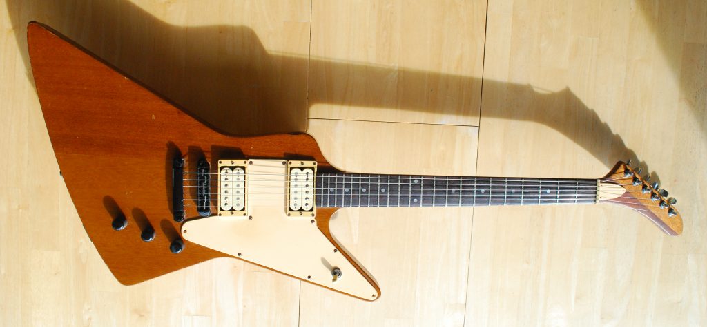 My luthier took out the flat frets that were there and put a full compliment of EVO Gold frets on it and it has a sound unlike any Explorer I ever owned. Even my ’76 Gibson didn’t sound this good. I paid nothing for the carcass! After my buddy lost all the parts he also lost interest. Wow!